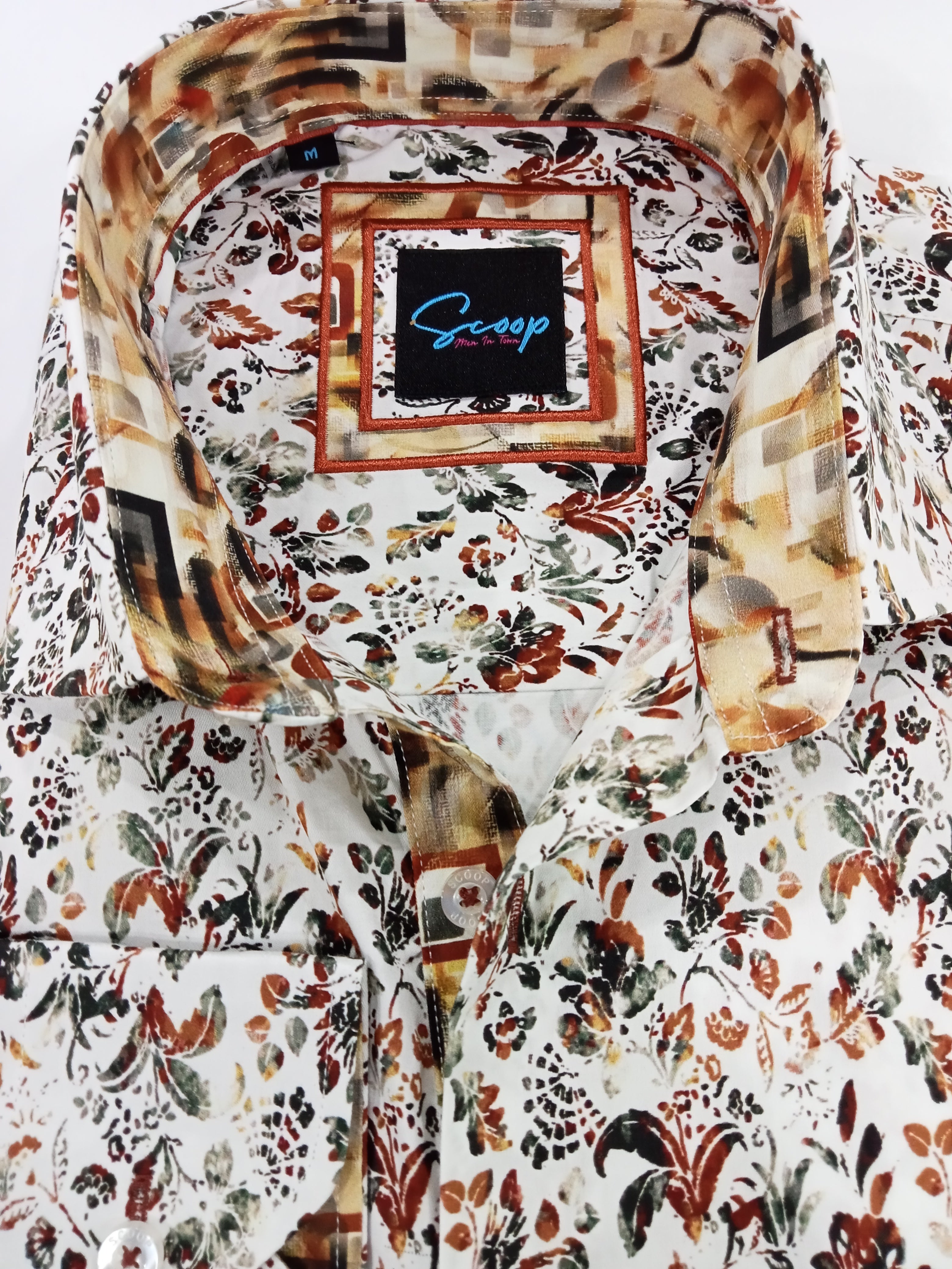 The Sugar 'Verdant' Long Sleeve Shirt is in a soft floral print on a white background with a complimentary print inside the collar and cuffs. Wear it with the cuffs down or rolled back for a different look.