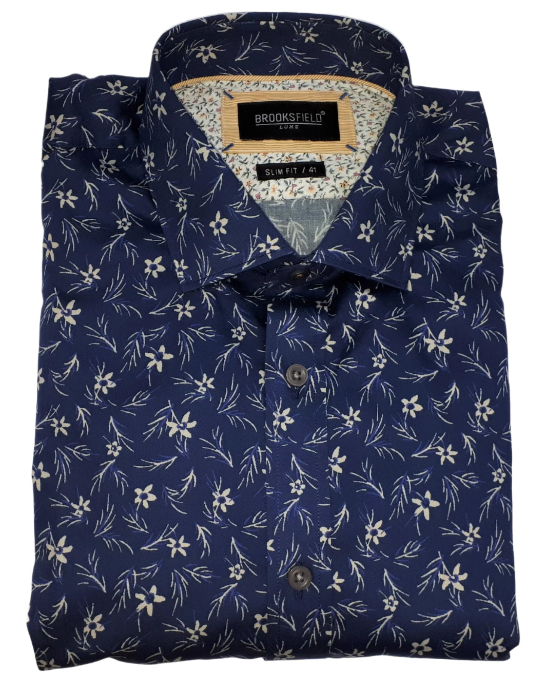 Say it with Florals curtesy of the printed Brooksfield shirt range. Made in Cotton Satin, this Floral printed shirt looks smart with Jeans or Trousers alike and is sure to earn many compliments on a night out.