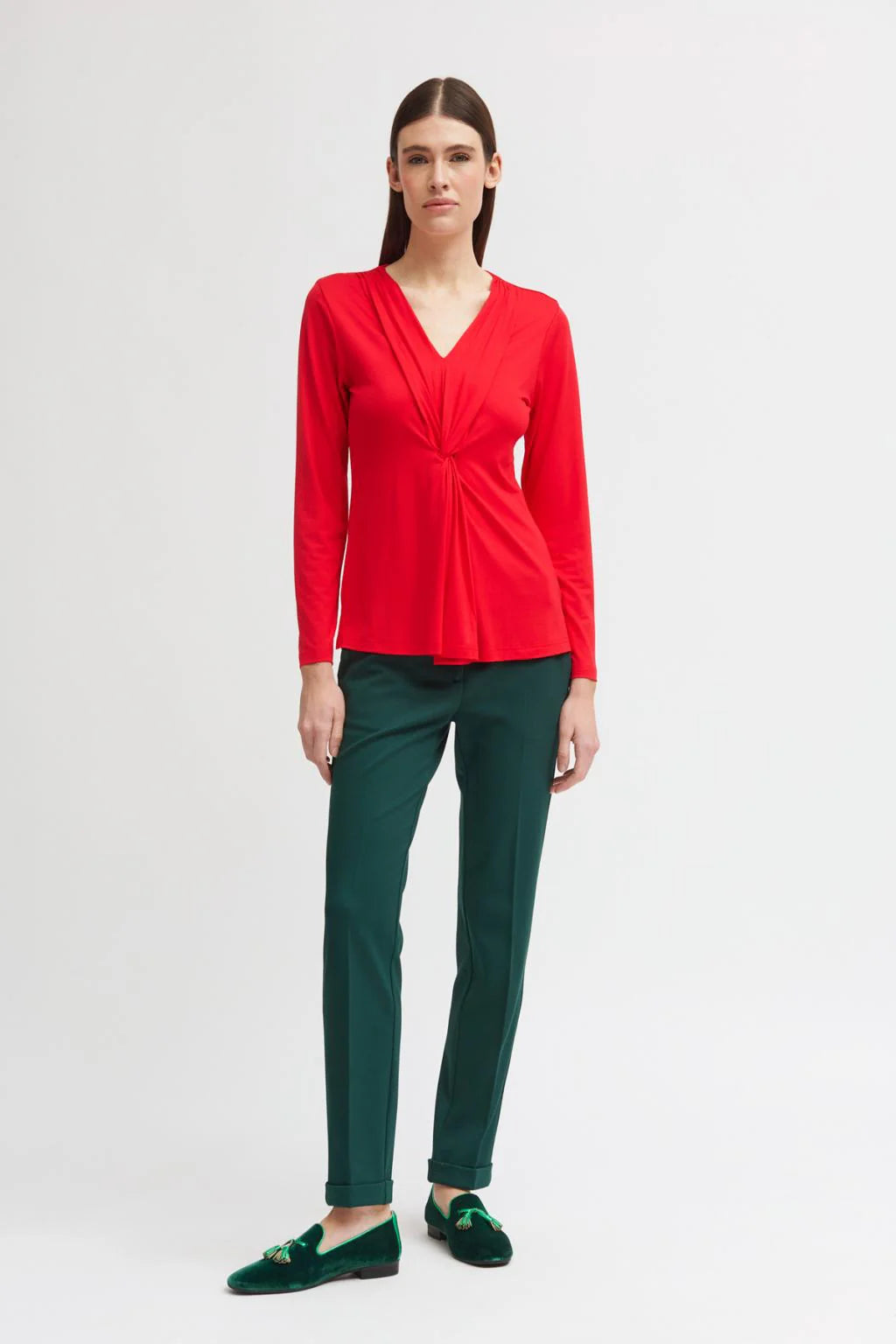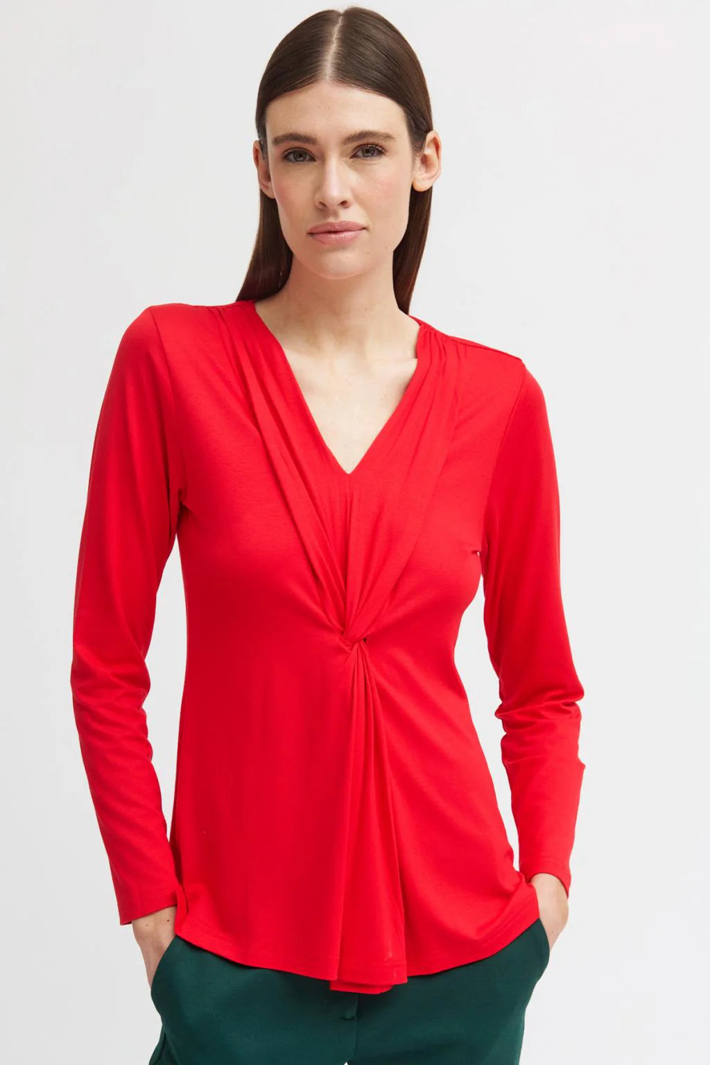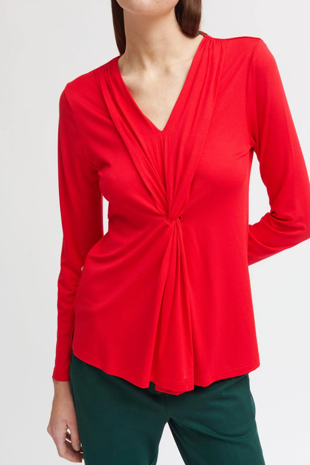 Monochrome long sleeve t-shirt with knot detail. V-neck. Fitted design. Long sleeve. Slightly rounded hem.